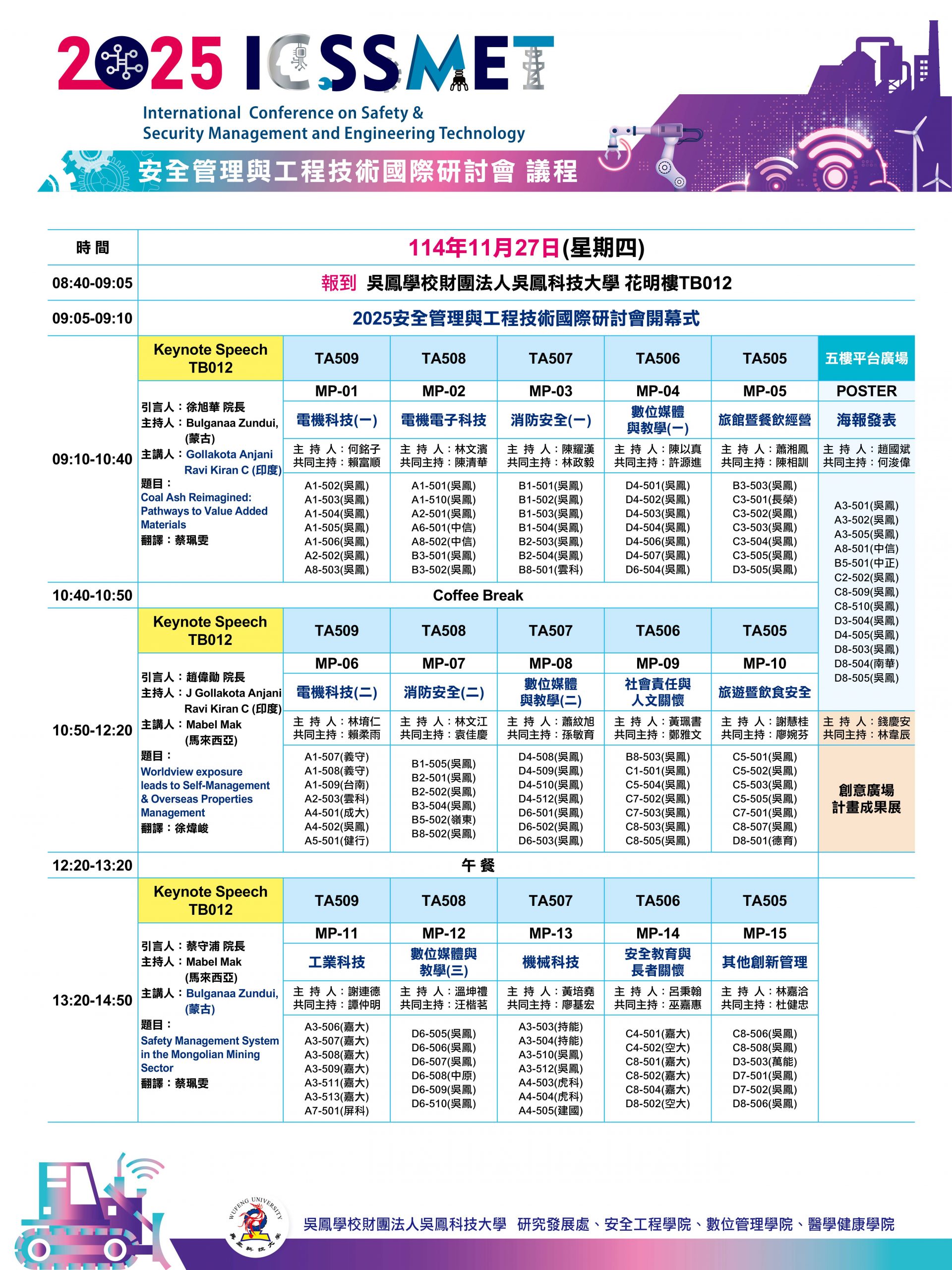 一、2025年安全管理與工程技術國際研討會日期:114年11月27日(星期四)。